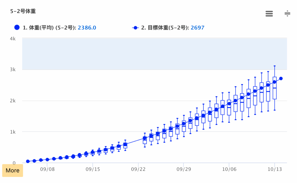 アクト・アップに予め目標体重を入力しておき、AIカメラで自動測定された現在の体重と比較しています。目標体重を下回ってきたら、過去の温度のデータをさかのぼり「この時期の温度管理の影響で、体重が思うように増えなかったんだね」と考察します。その反省を、次回の入雛のときに活かしていくイメージですね。